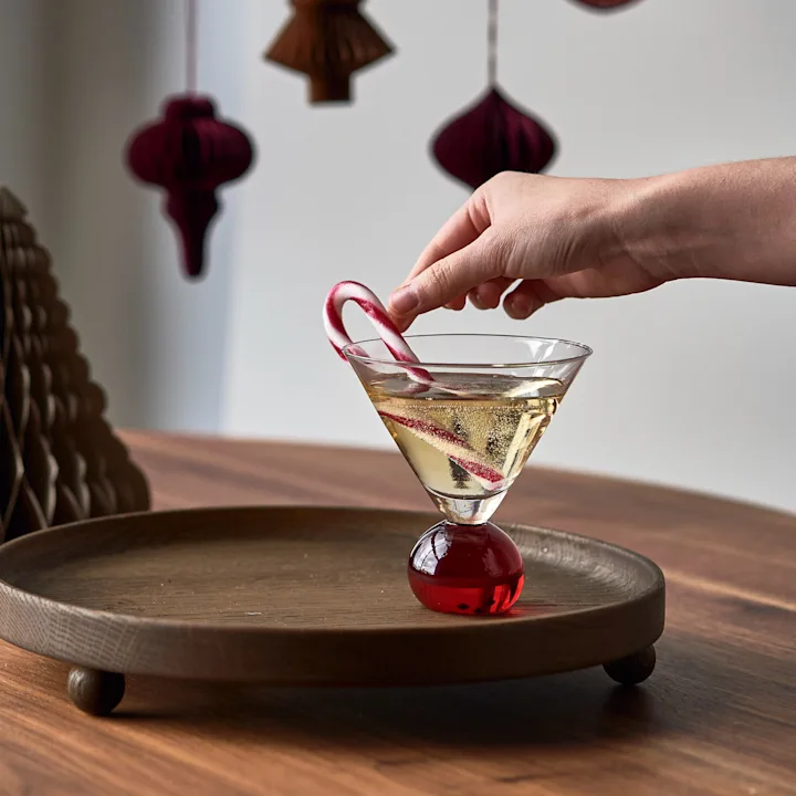 Hier zie je een gedekte tafel met Marimekko servies, sap en karaf van BYON in het ontwerp van mandarijnen.