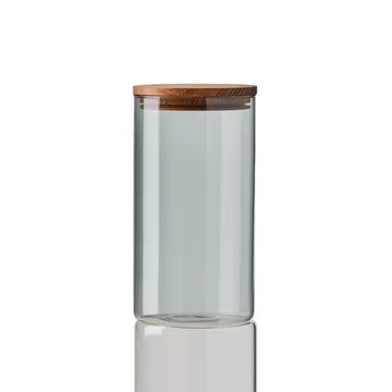 De glazen pot Raw in smoke met houten deksel van het Deense Aida design is net zo mooi als bruikbaar. De rookkleurige glazen pot heeft een deksel van teakhout, waardoor deze perfect is voor het droog en luchtdicht bewaren van voedsel in de voorraadkast. Dankzij het heldere glas ziet u gemakkelijk wat er in de pot zit. Natuurlijk kunt nu de glazen pot ook voor andere dingen gebruiken, of misschien wel als vaas voor een paar mooie takken uit de natuur? Met een stijlvolle en Scandinavische touch past deze glazen pot perfect in uw interieur.