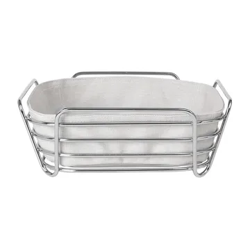 Delara broodmand 25x25 cm van blomus is gemaakt van roestvrij staal en zachte textiel in een mooi en uitnodigend ontwerp. De broodmand is een fijne detail op het ontbijt dienblad of op de eettafel voor het serveren van brood en is eenvoudig te combineren met verschillende serviezen, tafelkleden en servetten.