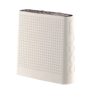 Het stijlvolle Bistro messenblok van Bodum is een praktisch en leuk detail voor de keuken. Het messenblok is gemaakt van plastic, silicoon en roestvrijstaal en de binnenkant bestaat uit groot aantal plastic stokjes, dat ervoor zorgt dat de messen stevig en rechtstaan. Het messenblok heeft een eenvoudig design dat geschikt is voor de meeste huishoudens en zal enerzijds uw messen beschermen en het koken vergemakkelijken. Kies uit verschillende kleuren.