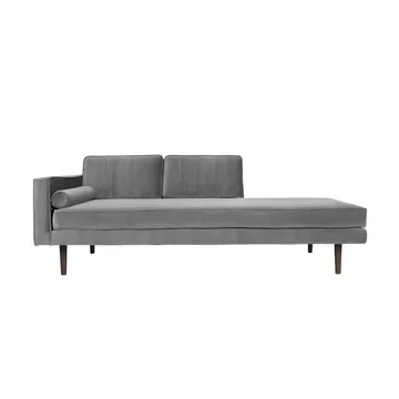 Geef je woonkamer een luxueuze en elegante uitstraling met de Wind chaise longue van het Deense merk Broste Copenhagen. De chaise longue is een iets eleganter alternatief voor de klassieke bank en is gebouwd met een frame van multiplex en massief grenen. Het meubel is bekleed met een luxueuze, zachte velvetstof en heeft een vulling van CME-schuim die zowel stabiliteit als hoog comfort biedt. Als contrast met de fijne stof heeft de chaise longue smalle poten in donkergebeitst eikenhout, wat karakter geeft. Wind is verkrijgbaar in meerdere trendy kleuren en wordt met zijn ontwerp een echt pronkstuk in je huis!