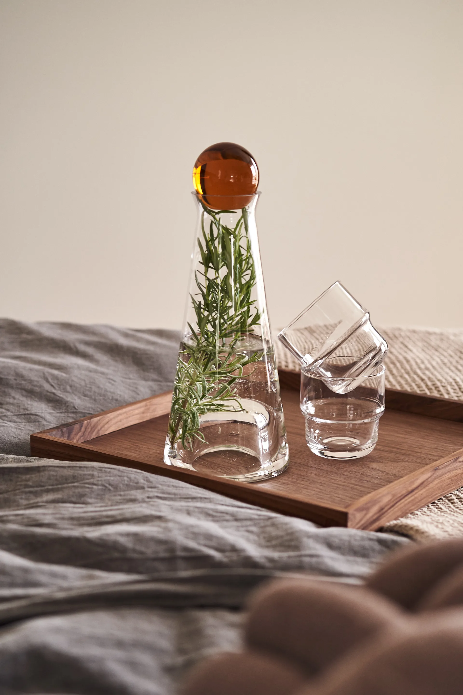 Deze eenvoudige strakke Fia karaf is gemaakt van mondgeblazen glas met een afsluitende bal, verkgrijgbaar in amber, zwart, roze of helder kristal. De karaf is ideaal voor het serveren van water, sap of wijn, maar kan - wanneer de bal onder de vaas wordt geplaatst - tevens worden gebruikt als bloemenvaas! De naam van de karaf Fia is veroemd naar de Zweedse versie van het bordspel Ludo.
