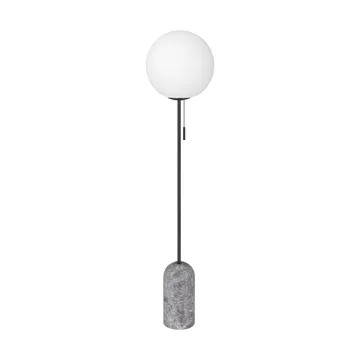 Torrano vloerlamp van Globen Lighting is een elegante vloerlamp ontworpen door Patrick Hall. De imposante voet in massief marmer ontmoet een slanke stang in geborsteld messingkleurig metaal en wordt bekroond door een glazen kap van wit opaalglas. Samen creëren de ronde vormen en de solide steen een mooie tegenstelling die de ruimte karakter geeft. Plaats de Torrano naast de bank of in een hoek voor warme, huiselijke verlichting die zowel verlicht als dienstdoet als een prachtig decoratief element.