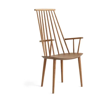 De J110 armstoel van HAY is ontworpen door Poul M. Volther. De hoge houten latten in de rugleuning creëren een fascinerend schaduwspel wanneer de zon schijnt. Perfect voor zowel de eethoek als de woonkamer, deze tijdloze designstoel biedt comfort en esthetiek in één.