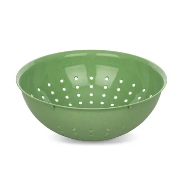 Palsby vergiet M 2 l van het Duitse Koziol is gemaakt van gerecycled plastic en cellulose, wat helpt meer dan twee derden van de CO₂-uitstoot te besparen vergeleken met nieuw materiaal. De stervormige perforatie zorgt voor snel weglopend water en werkt tegelijkertijd als decoratief designelement. De zeef kan in een schaal worden geplaatst of eenvoudig in de gootsteen worden gezet. De binnenkant is hoogglans afgewerkt zodat voedsel gemakkelijk in de serveerschaal of pan glijdt, en hij is ook zeer eenvoudig schoon te maken. Het compacte vergiet past perfect in de schaal Palsby M en kan ruimtebesparend in het kastje worden opgeborgen.