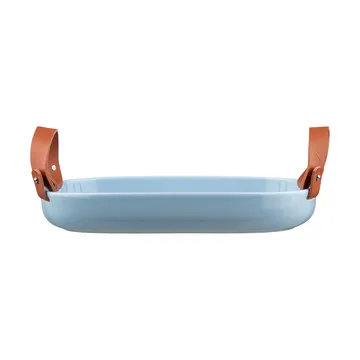 Oiva iso serveerschaal 23x32 cm van Marimekko, ontworpen door Sami Ruotsalainen, is gemaakt van 100% steengoed met een lichtblauwe glazuur. De elegante leren handgreep van het schaal is eenvoudig te verwijderen en moet worden verwijderd vóór het afwassen. De serveerschaal, geleverd in een verpakking met het Marimekko logo-patroon, is perfect als cadeau voor iemand van wie je houdt.