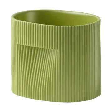 Ridge pot 15 cm van Muuto is vervaardigd uit steengoed met een matte afwerking en een geglazuurde binnenkant die een degelijk en harmonieus geheel geeft. De subtiele geribbelde rand en de discrete handgrepen maken hem zowel stijlvol als praktisch. Perfect voor kleinere planten, kruiden of succulenten, en even geschikt op een vensterbank als op een bureau of plank. Een tijdloze detail dat de ruimte versterkt en een natuurlijke balans in de inrichting creëert.