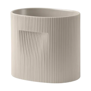 Ridge pot 24 cm van Muuto is vervaardigd uit steengoed met een matte afwerking en een geglazuurde binnenkant die een robuuste en harmonieuze uitstraling geeft. De subtiele geribbelde rand en de bescheiden handgrepen maken hem zowel stijlvol als praktisch. Perfect voor kleinere planten, kruiden of succulenten, en even geschikt op een vensterbank als op een bureau of plank. Een tijdloze detail die de ruimte verlevendigt en een natuurlijke balans in het interieur creëert.