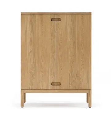 Prio kast hoog van Stolab maakt deel uit van de opbergserie Prio, ontworpen door Måns Sjöstedt/Yellon. Het kan worden aangepast aan verschillende interieurvoorkeuren met een keuze tussen massief berken- of eikenhout en een gewenste afwerking of kleur. De houten details van de kast, zoals de uitgeholde bovenkanten en handgrepen, evenals het afgeronde onderstel, zorgen voor een exclusieve en natuurlijke uitstraling. Prio biedt een elegante oplossing voor opberging in huis, terwijl de materiaalkeuze de schoonheid van massief hout benadrukt.