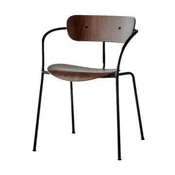 Pavilion stoel AV2 van &Tradition is een stapelbare armstoel ontworpen door Anderssen & Voll, met een lichte en luchtige silhouet die toch goede stabiliteit biedt. De elegant gebogen armleuningen in geforceerd staal ontmoeten een zorgvuldig ontworpen zitting en rugleuning in hout, wat een warme en uitnodigende sfeer creëert rond de eettafel of in de zithoek thuis. Pavilion combineert functionaliteit en tijdloos design — gemakkelijk te verplaatsen, eenvoudig stapelbaar en mooi zowel voor een doordeweekse maaltijd als wanneer er gasten komen. Een perfecte stoel voor wie kwaliteit en doordacht ontwerp in huis wil.