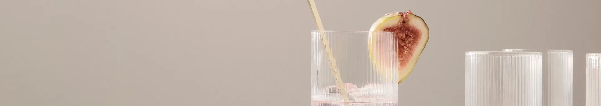 De Ripplelongdrink glazen van Ferm Living zijn tijdloos en elegant, terwijl de Bossa Nova collectie van Nachtmannunieke glazen biedt met een prachtig rieten mand patroon, ideaal voor een unieke twist aan je drankje.